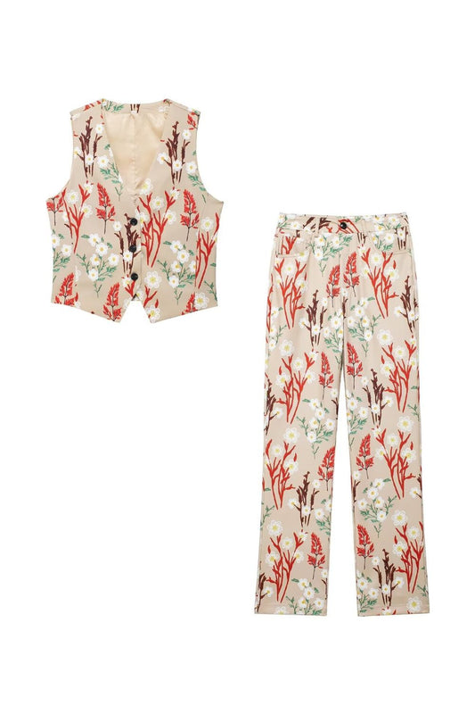 ‘Kennedy’ Printed V-Neck Vest Top & Trousers Set (Sold Separately)