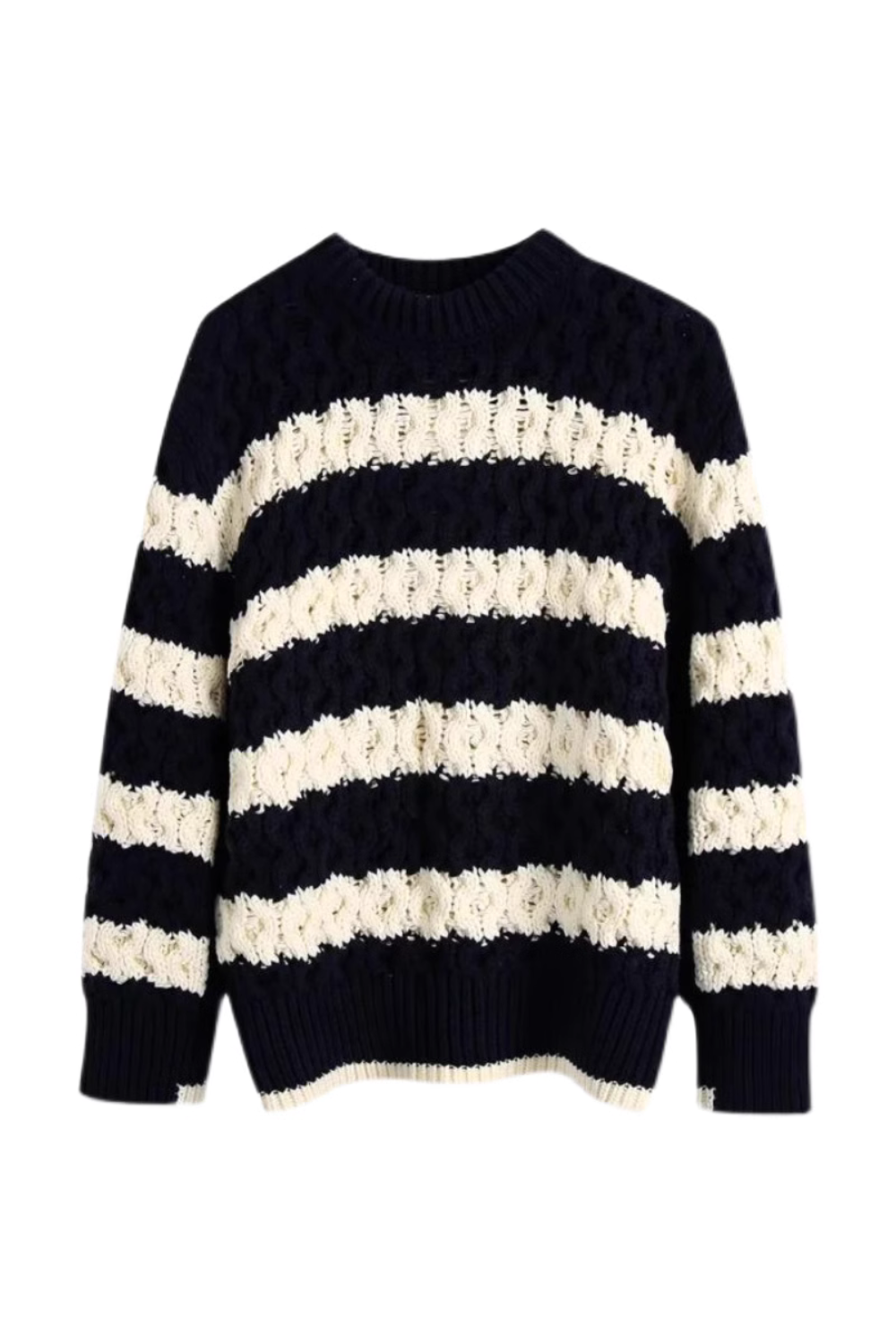 Goodnight Macaroon 'Sage' Striped Round-Neck Knitted Pullover Sweater