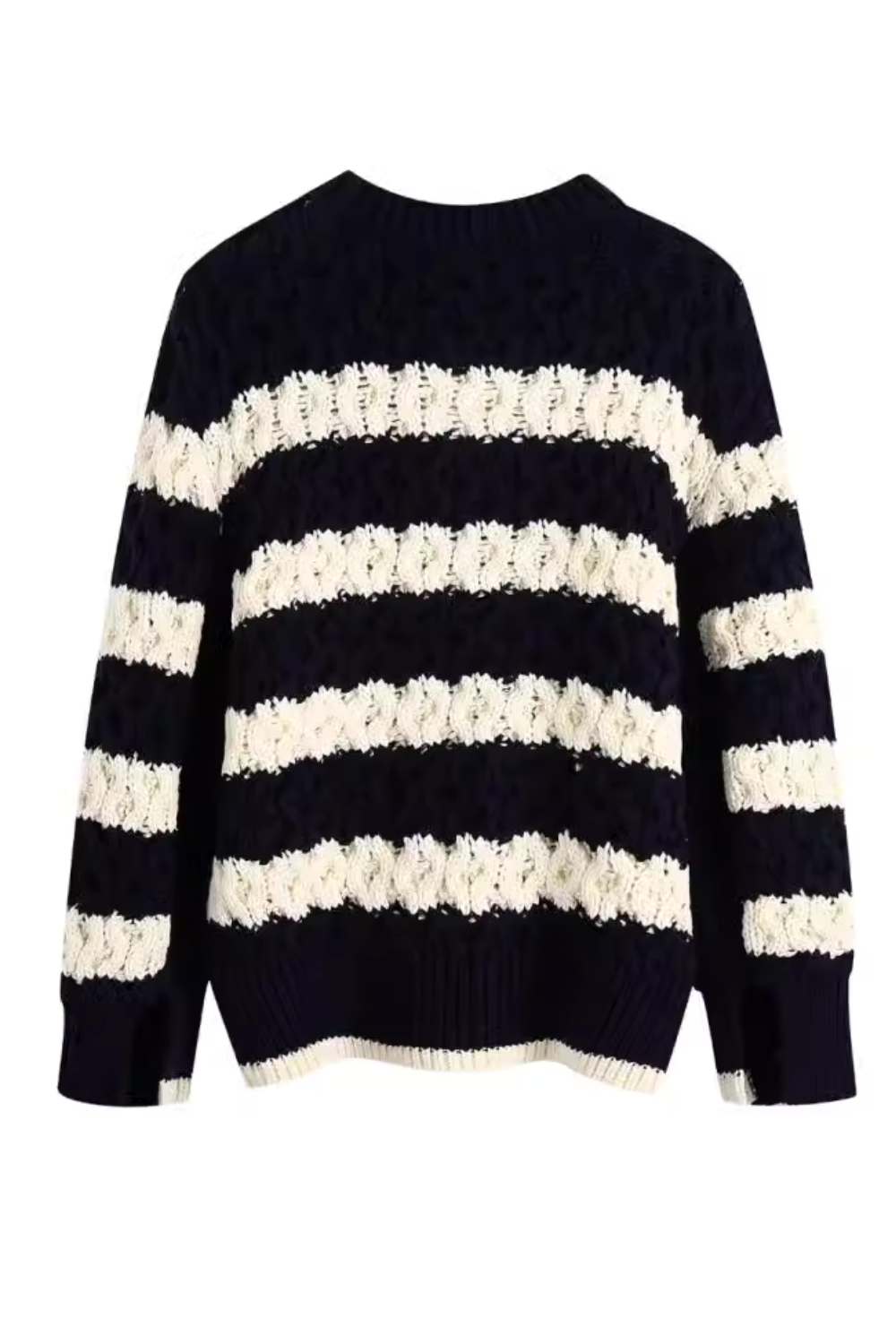 'Sage' Striped Round-Neck Knitted Pullover Sweater