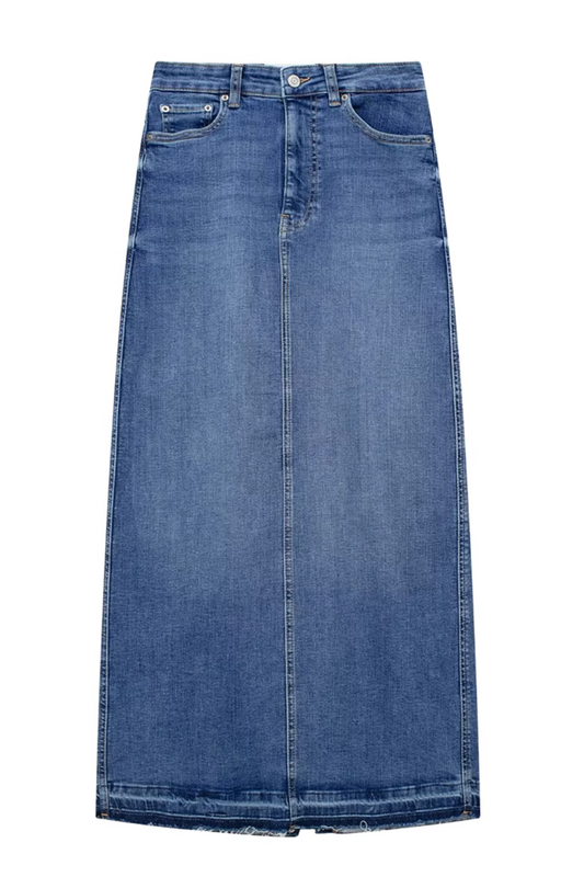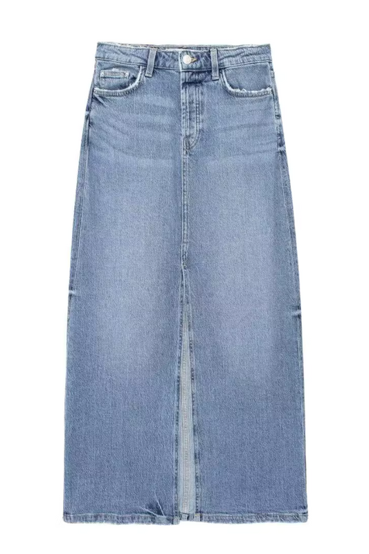 'Rhoda' High-Waist Slit Denim Skirt