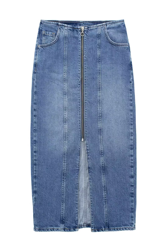 'Juliette' Front-Zip Closure Slit Denim Skirt