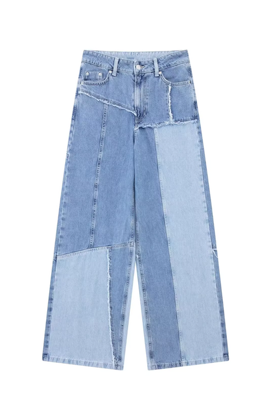 'Josie' High-Waist Patchwork Denim Jeans