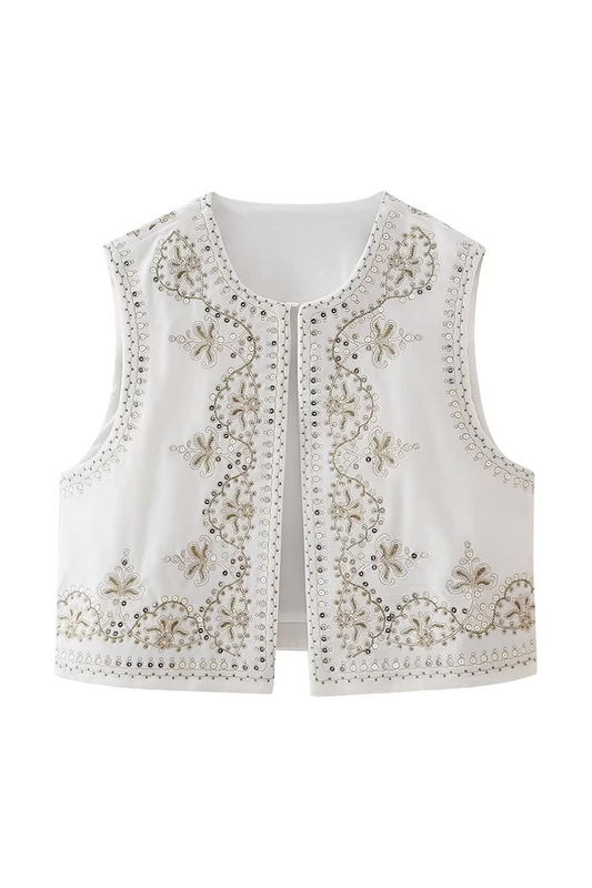 'Hannah' Sleeveless Embroidered Retro Vest (7 Colors)