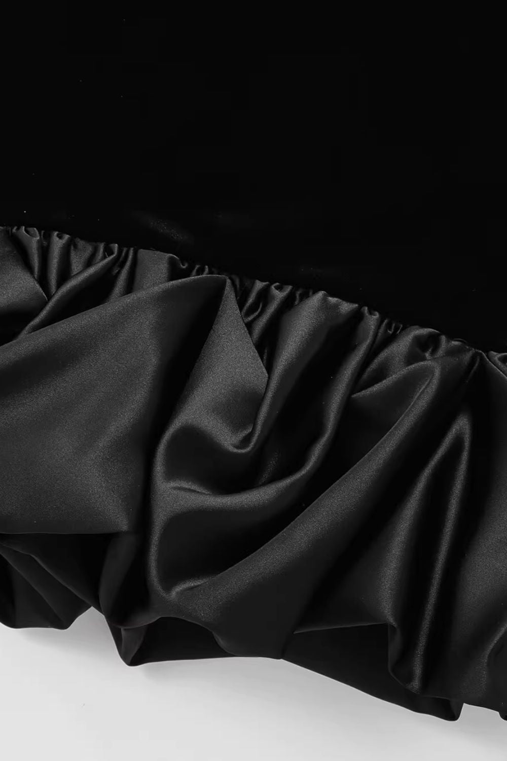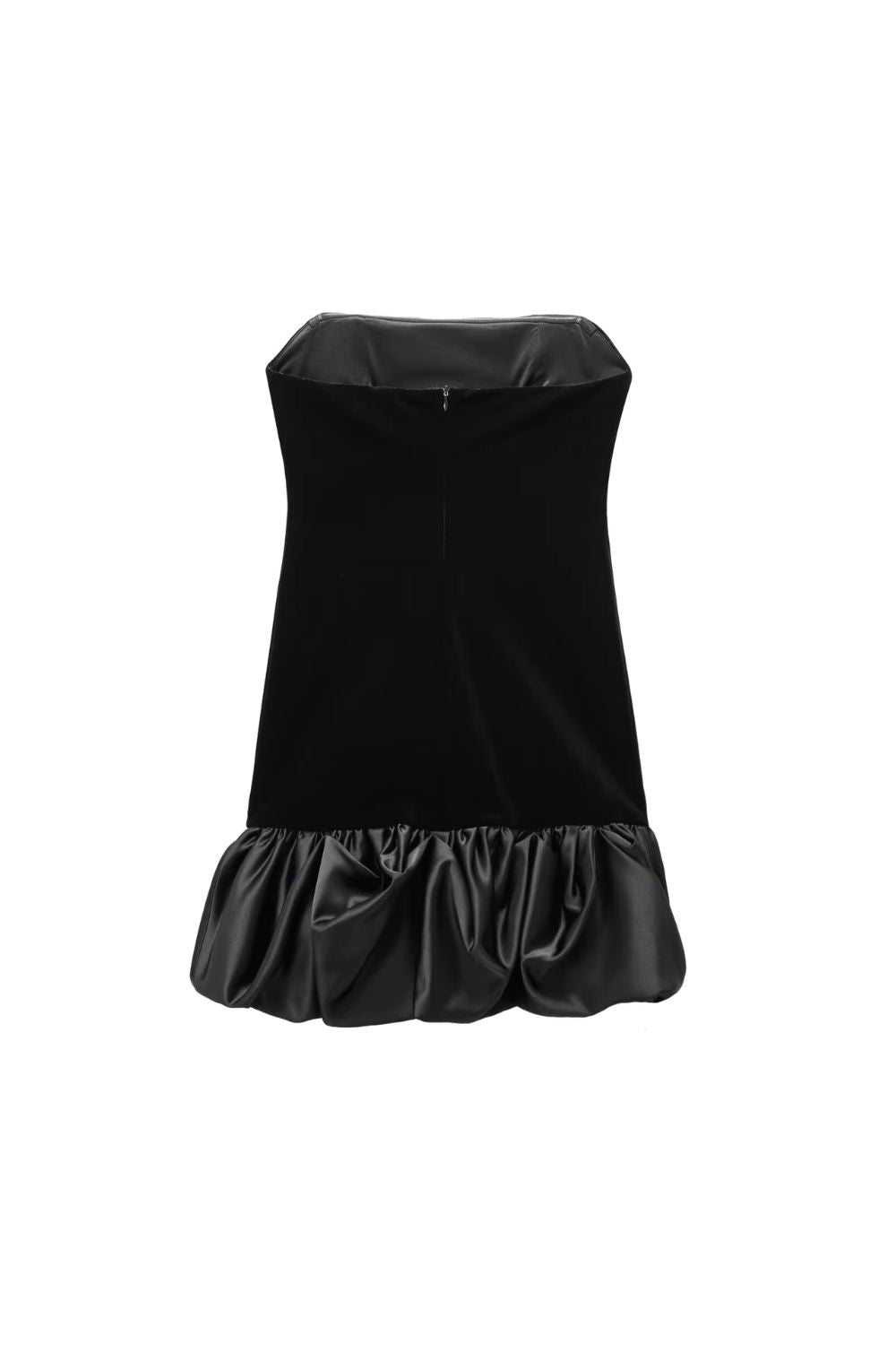 Straight - Neck Strapless Mini - Dress with Shoulder - Baring Design. Same - Tone Puffy Hem. Hidden Zipper Closure at the Back Seam.