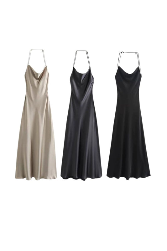 'Ruby' Halter Neck Satin Slip Dress