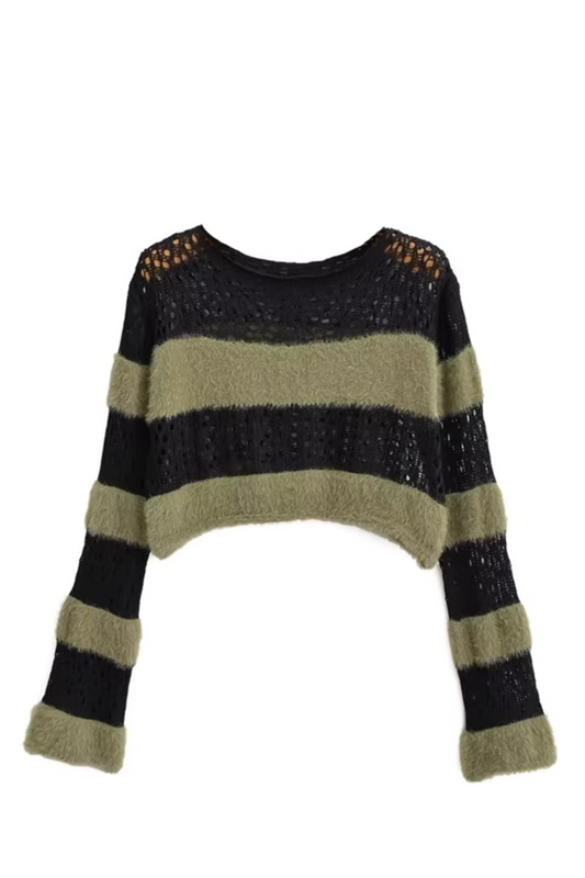 'Kimberly' Stripe Cropped Knitted Sweater