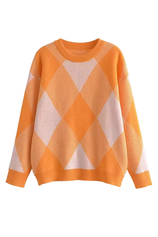 'Odette' Round-neck Argyle pattern Sweater