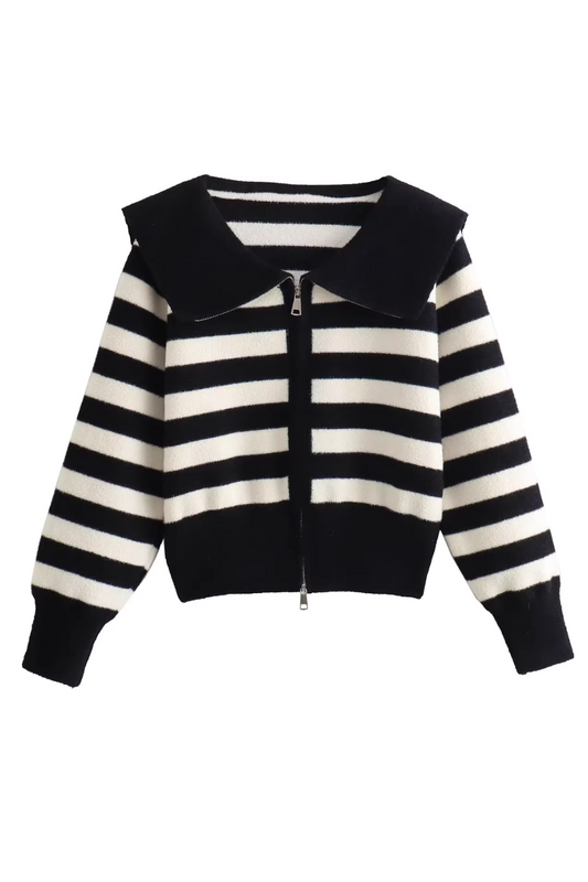 'Mia' Full-Zip Striped Knitted Sweater