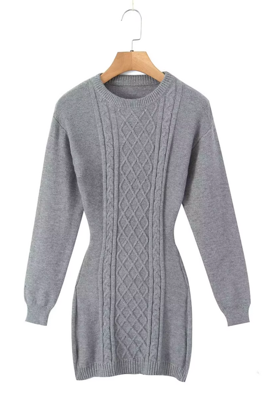 'Josephine' Long Sleeves Cut-Out Knitted Dress (3 Colors)