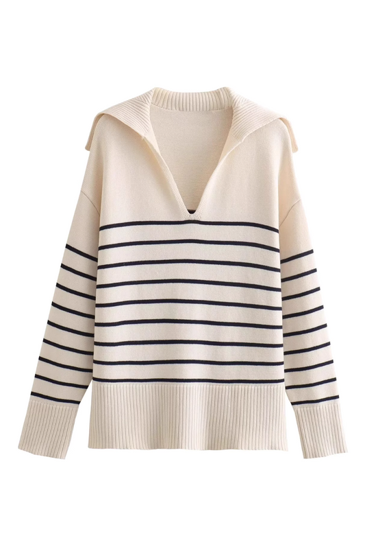 'Lexi' V-Neck Wing Collar Stripe Sweater