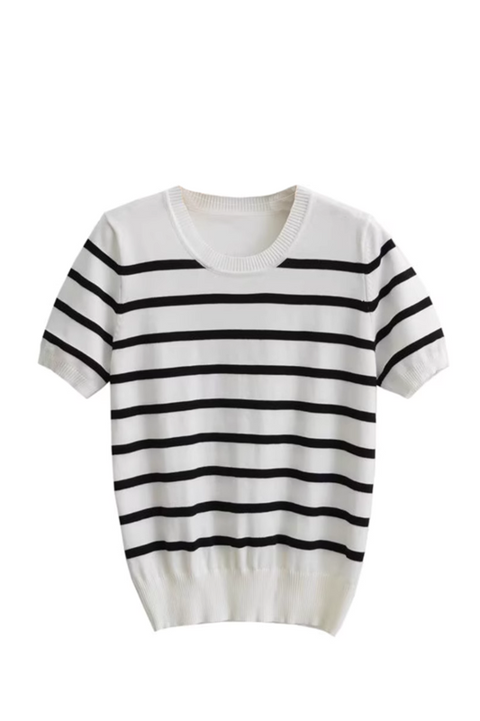 'Addie' Striped Short-Sleeved Knitted Sweater
