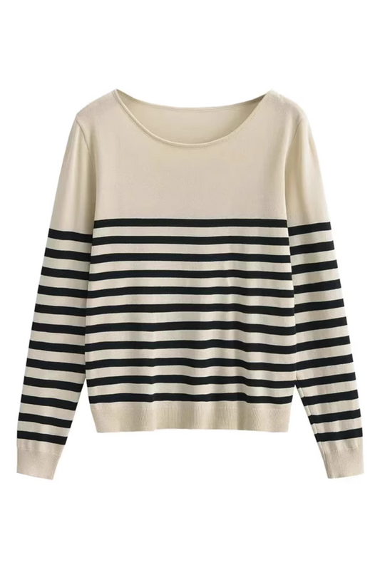 'Ellen' Round-Neck Striped Pullover (2 Colors)