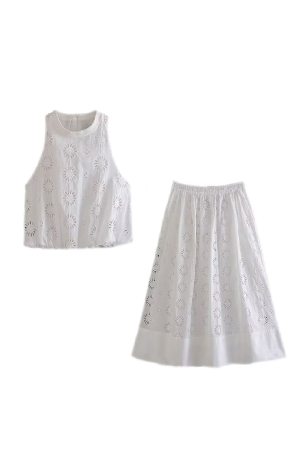 ‘Varvara’ Hollow-out Embroidered Halter Top & Bottom (Sold Separately)