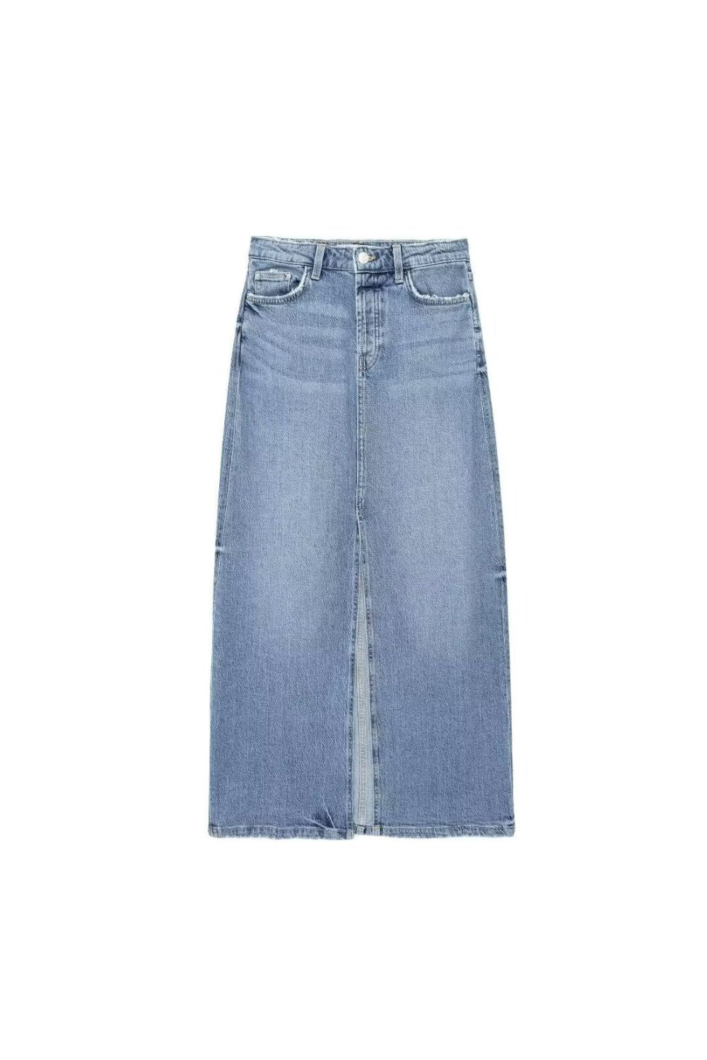 'Hazel' Slit A-Line Bodycon Midi Denim Skirt (3 Color)