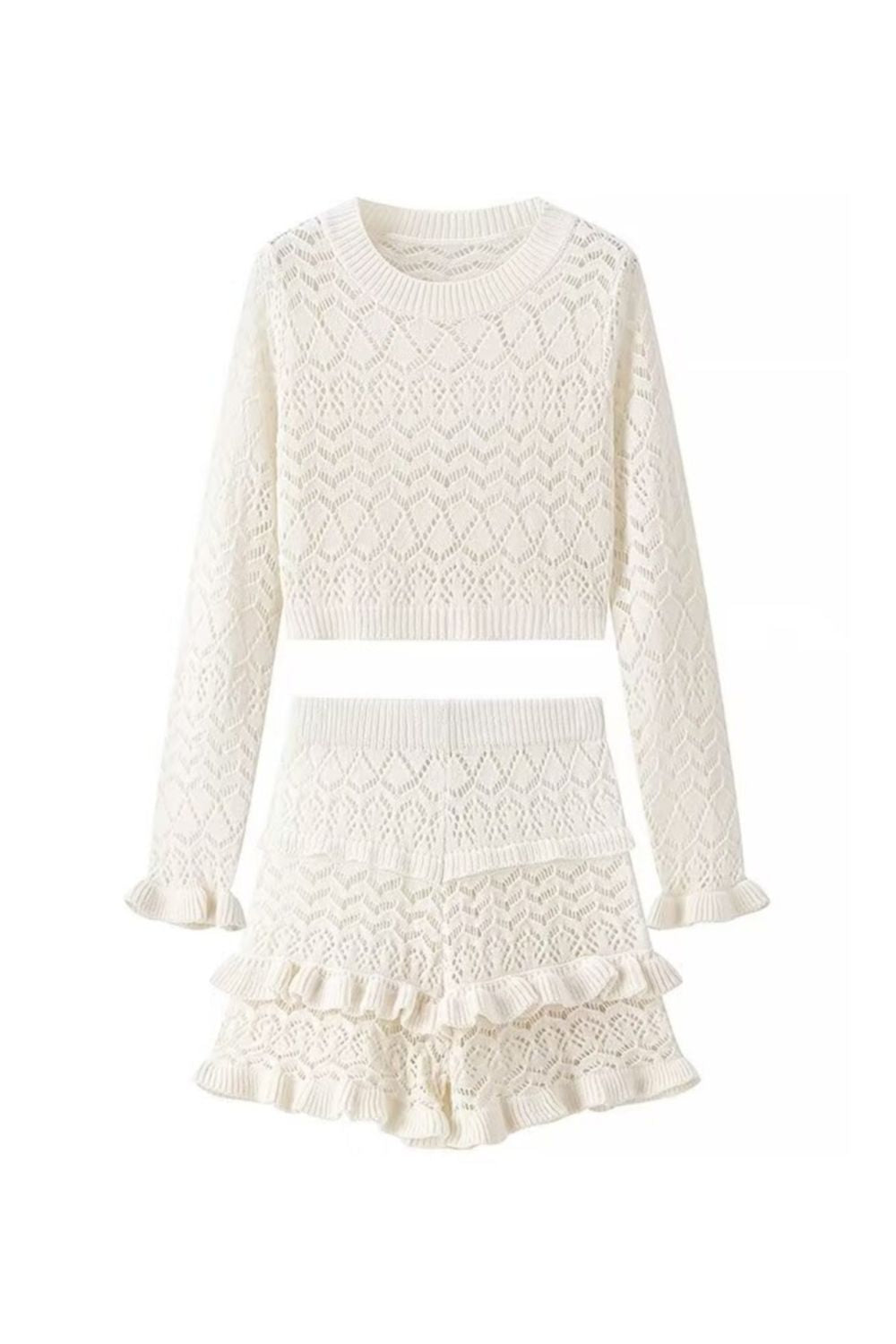 'Brooklyn'Minimalist Knit Top & Openwork Skirt Set(Sold Seperately)