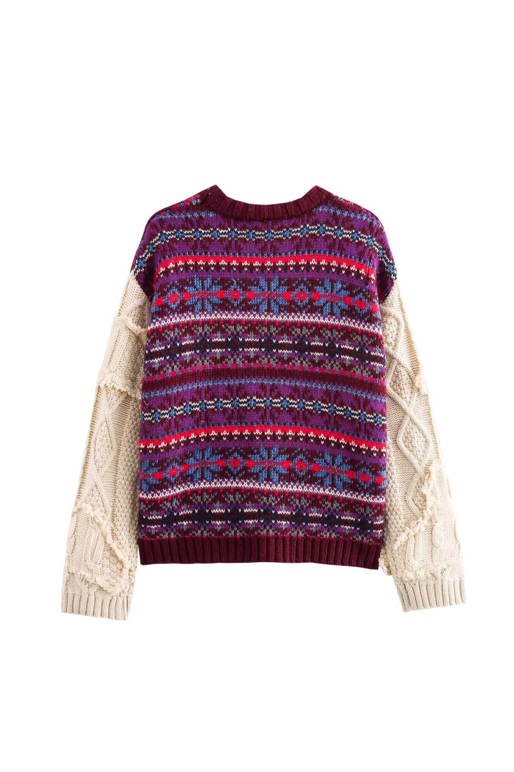'Naomi' Stylish Jacquard Patchwork Round-Neck Sweater