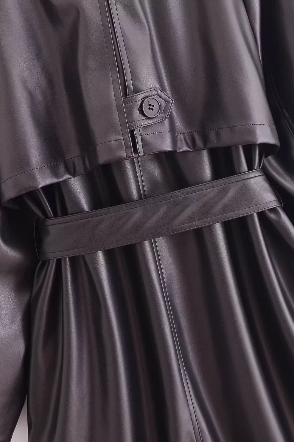 'Brittany' Faux Leather Classic Trench Coat