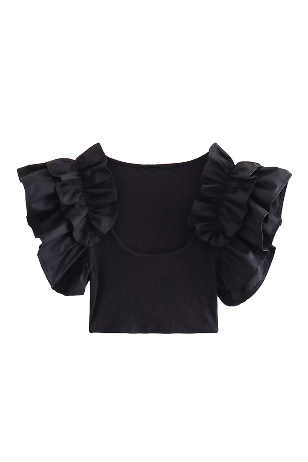 'Sarah' Ruffled Sleeves Knit Ribbed Top (3 Colors)