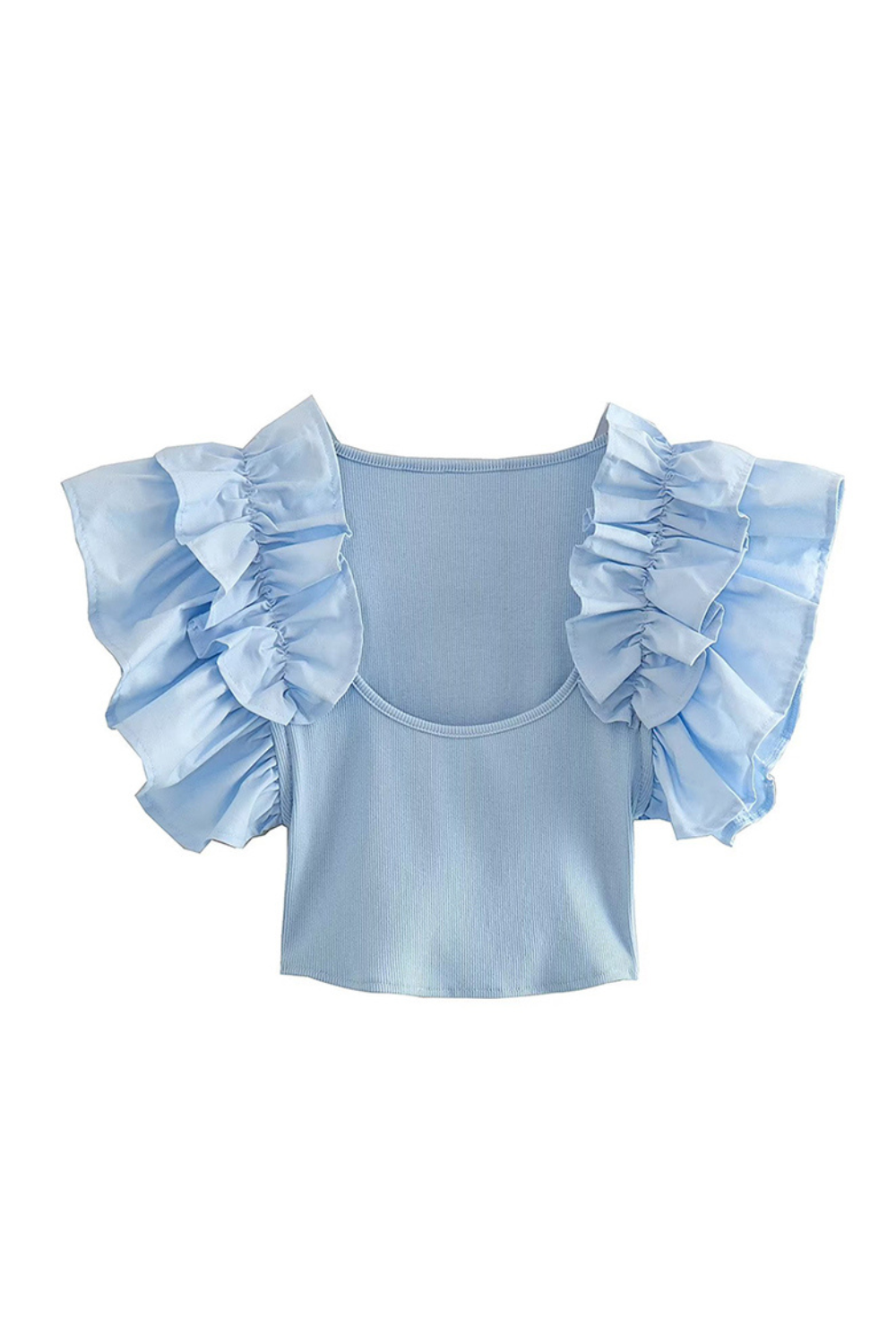 Goodnight Macaroon 'Sarah' Ruffled Sleeves Knit Ribbed Top (3 Colors)