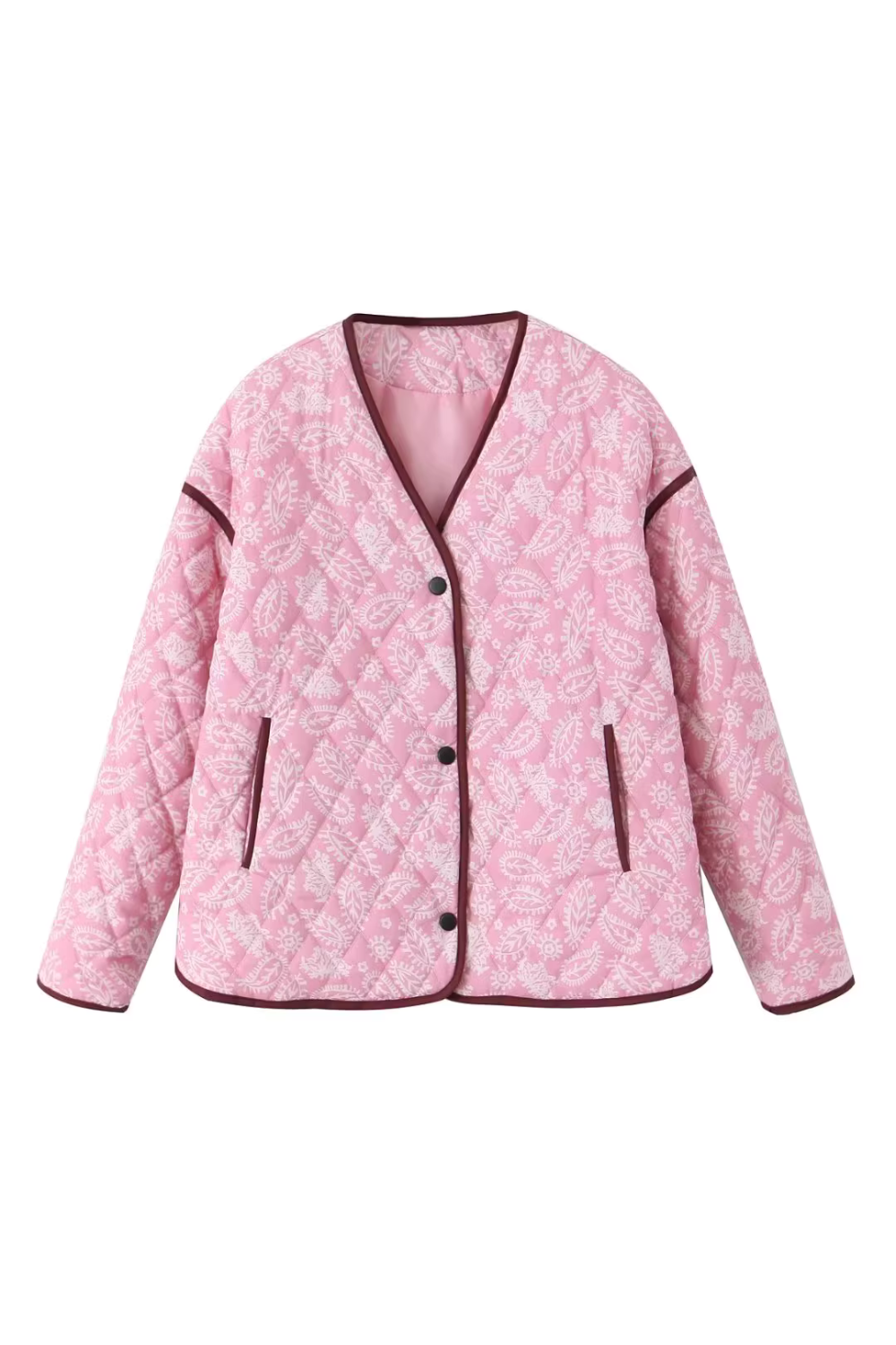 Goodnight Macaroon 'Wilma' V-Neck Diamond Quilted Printed Jacket