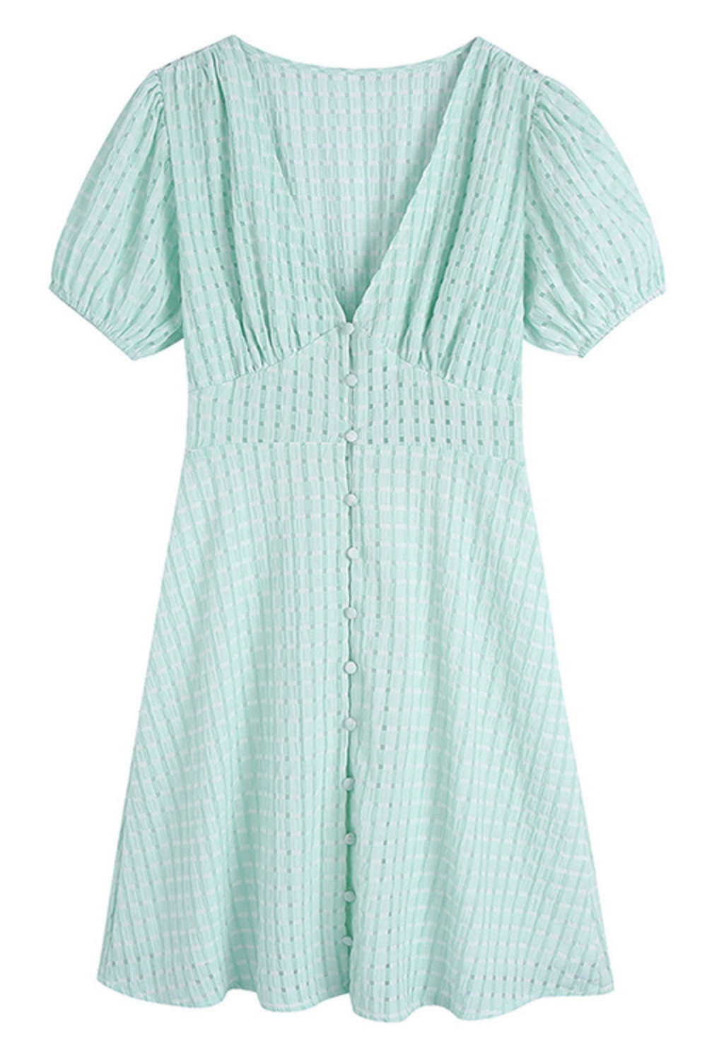 Goodnight Macaroon 'Yannis' V-Neck Plaid Puff Sleeve Dress